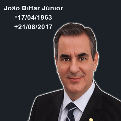 UBERLÂNDIA - Esta sendo velado no Cemitério Parque dos Buritis, o ex-deputado João Bitttar, 54 anos, que morreu nesta madrugada, quando deu entrada num clínica de Uberlândia com quadro de pnenumonia e morreu devido a complicações. Ele tratava de um câncer há cerca de um ano.