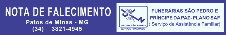 Faleceu ontem em Patos de Minas o Sr. João Ribeiro de Melo com 66 anos.