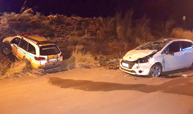 Um acidente inusitado na noite desta segunda-feira (31) por pouco não teve consequências mais graves. Um veículo conduzido por cadete da Polícia Militar passou direto no Trevo de Lagoa Formosa e bateu em cheio em uma viatura da Polícia Rodoviária Estadual que estava parada em uma abordagem.