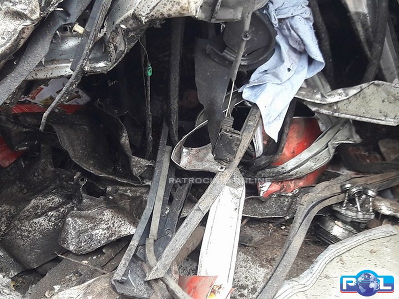 O corpo ficou preso às ferragens do veículo, que ficou totalmente destruído com o impacto da batida.