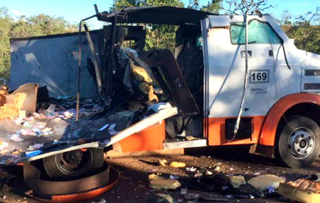Uma quadrilha atacou um carro forte no KM 935 da BR-251, na altura de Unaí, e explodiu o veículo, roubando parte do dinheiro ali contido na tarde desta segunda-feira (22). Houve troca de tiros entre os bandidos e os seguranças que estavam no interior do carro forte. A Polícia Militar não conseguiu localizar os autores do crime, mas segue rastreando informações a respeito dos ladrões.