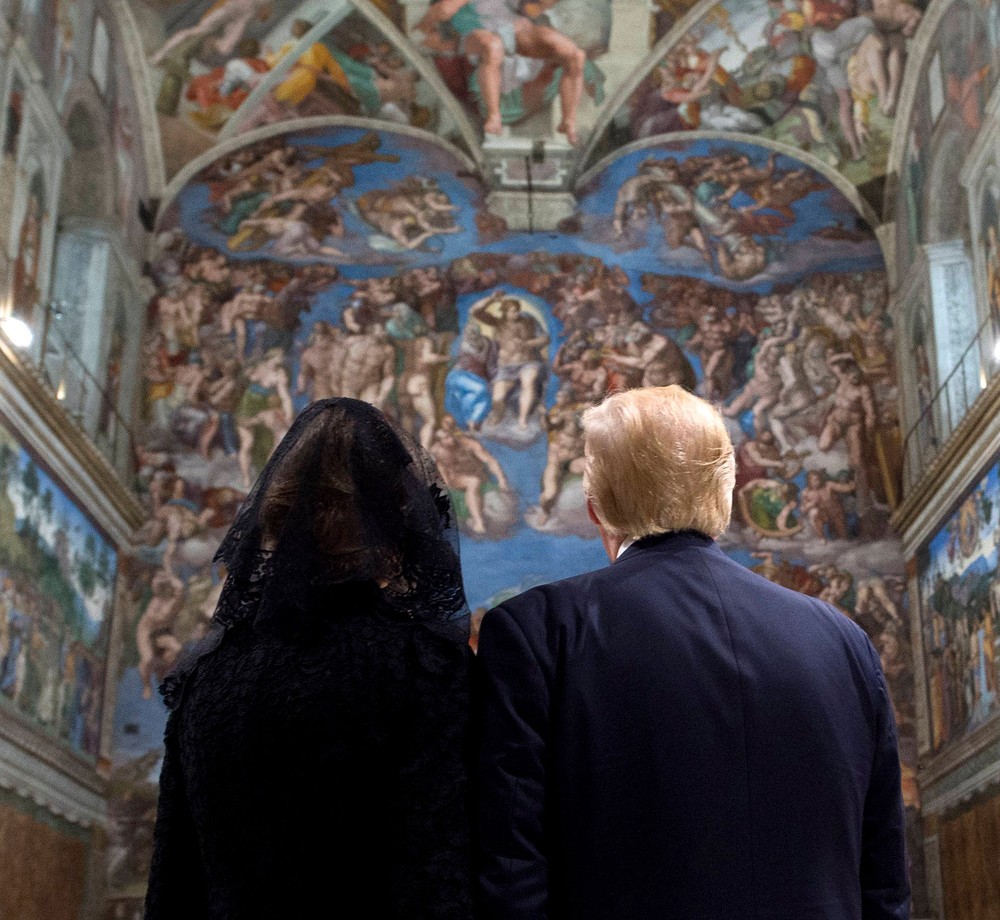 O presidente americano, um protestante presbiterano, e sua terceira esposa, católica, visitararam a Capela Sistina e a Basílica de São Pedro.