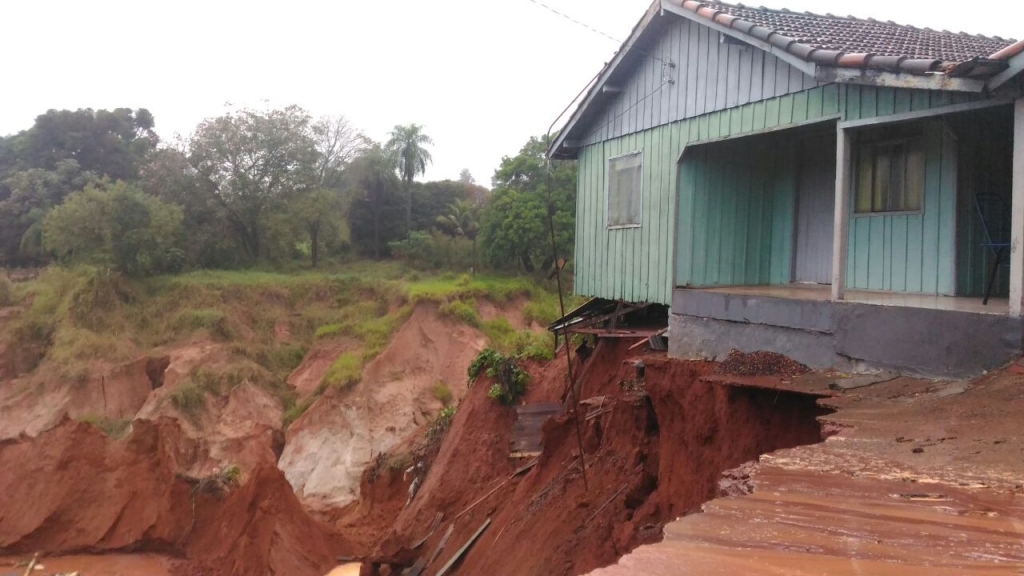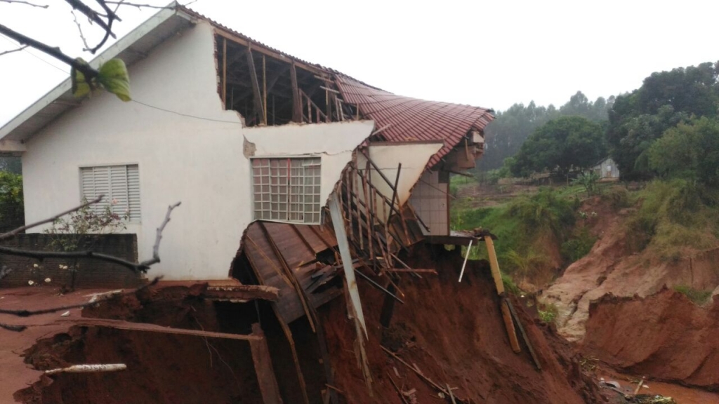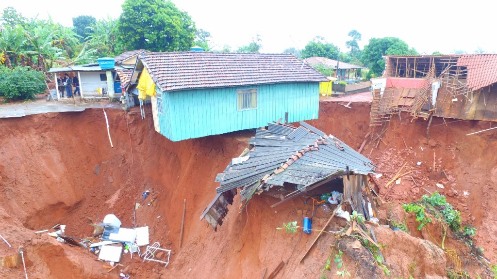 Três casas da mesma família foram arrastadas para a cratera após uma caixa de contenção de água se romper em uma região rural de Cianorte