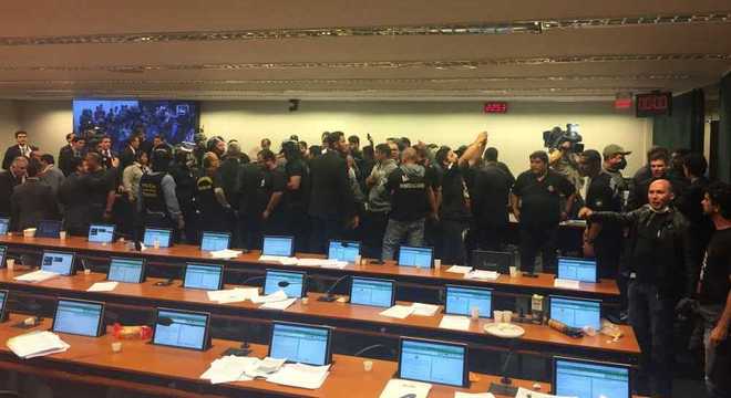 Antes de invadirem a sessão, os agentes penitenciários acompanhavam a votação do lado de fora do Anexo II da Câmara dos Deputados. Eles entraram no prédio após arrebentarem a grade que os separada da área interna.