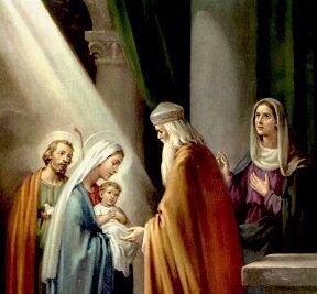 Concluídos os dias da sua purificação [...] levaram-no a Jerusalém para o apresentar ao Senhor, [...] e para oferecerem o sacrifício prescrito pela Lei do Senhor [...]. Ora, havia em Jerusalém um homem chamado Simeão. Esse homem, justo e piedoso, esperava a consolação de Israel, e o Espírito Santo estava nele. [...] Impelido pelo Espírito Santo, foi ao templo. E tendo os pais apresentado o menino Jesus, [...] tomou-o em seus braços e louvou a Deus [...]: "Agora, Senhor, deixai o vosso servo ir em paz, segundo a vossa palavra. Porque os meus olhos viram a vossa salvação que preparastes diante de todos os povos, como luz para iluminar as nações, e para a glória de vosso povo de Israel”. [...]