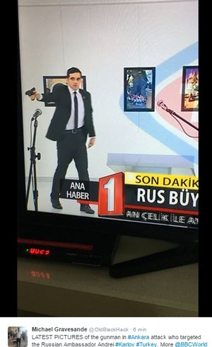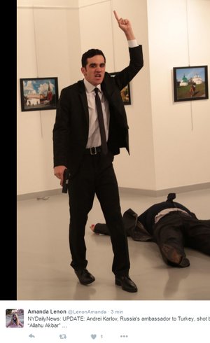 O atirador entrou no local vestido de terno e gravata, com uma documentação de policial, e gritava palavras contra a intervenção da Rússia na Síria. "Não esqueçam de Aleppo, não esqueçam da Síria", disse o jovem que aparenta ter cerca de 30 anos.