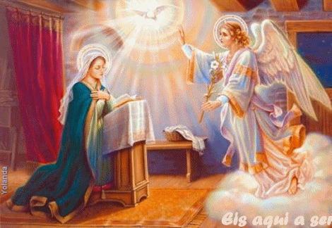 O anjo Gabriel foi enviado por Deus a uma cidade da Galileia, chamada Nazaré, a uma virgem desposada com um homem que se chamava José, da casa de Davi e o nome da virgem era Maria. Entrando, o anjo disse-lhe: "Ave, cheia de graça, o Senhor é contigo”. [...] "Não temas, Maria, pois encontraste graça diante de Deus. Eis que conceberás e darás à luz um filho, e lhe porás o nome de Jesus”. [...] Maria perguntou ao anjo: "Como se fará isso, pois não