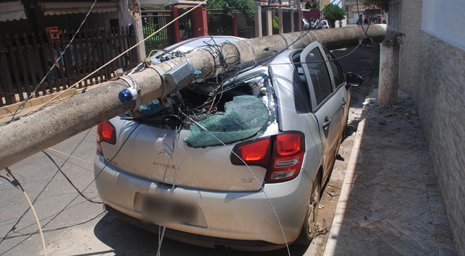O motorista de um VW/Fox que havia acabado de estacionar um pouco à frente do Citroen, disse que o capô do automóvel também sofreu pequenos danos. A Polícia Militar e o Corpo de Bombeiros estiveram no local para registrar a ocorrência. A empresa credenciada pela CEMIG desligou o padrão de energia para ser feito o reparo.