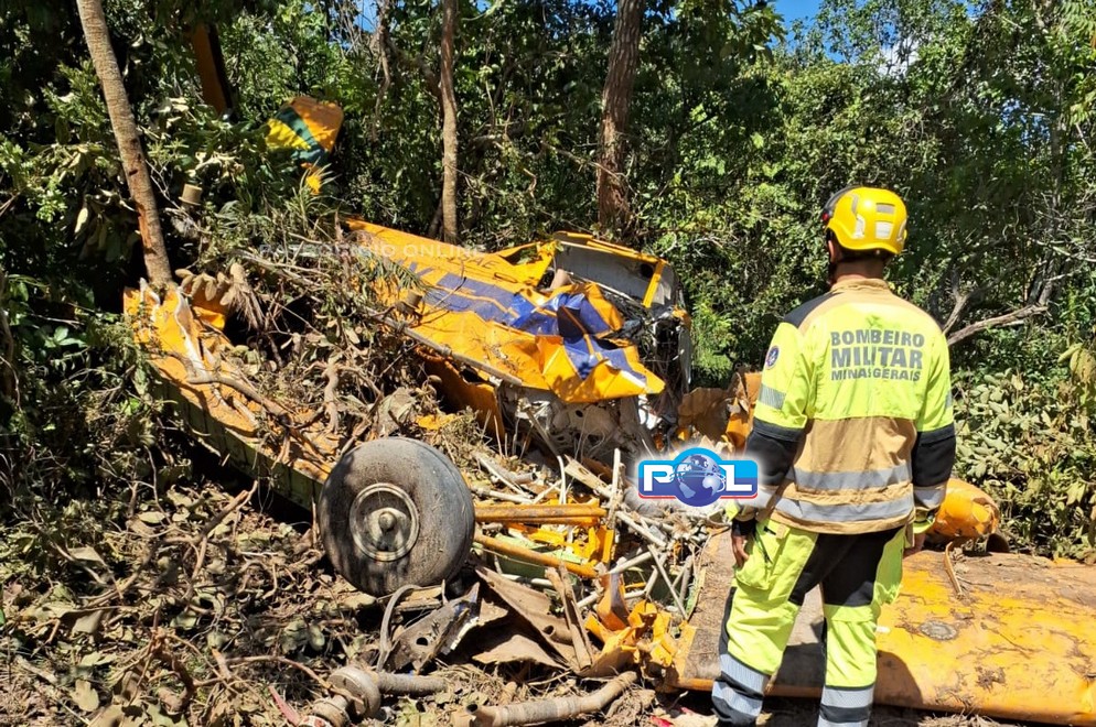 Os militares do Corpo de Bombeiros Militar foram acionados para uma ocorrência de queda de aeronave agrícola na zona rural de Vazante no limite com a cidade de Paracatu, envolvendo um avião modelo Ipanema 201, prefixo PT-GVS, de cor amarela.