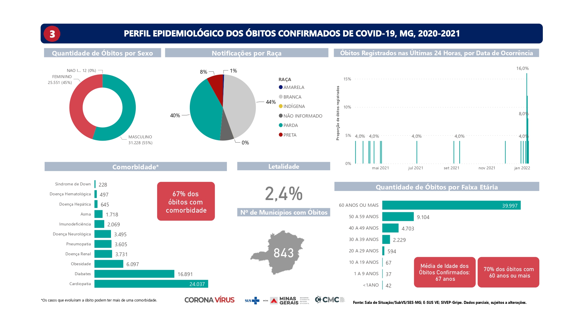 Estão confirmados 56.791 óbitos, sendo 23 nas últimas 24 horas.