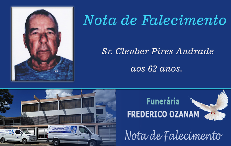 Faleceu neste domingo, 02 de novembro de 2025, em Patrocínio/MG, o Sr. Cleuber Pires Andrade aos 62 anos.
