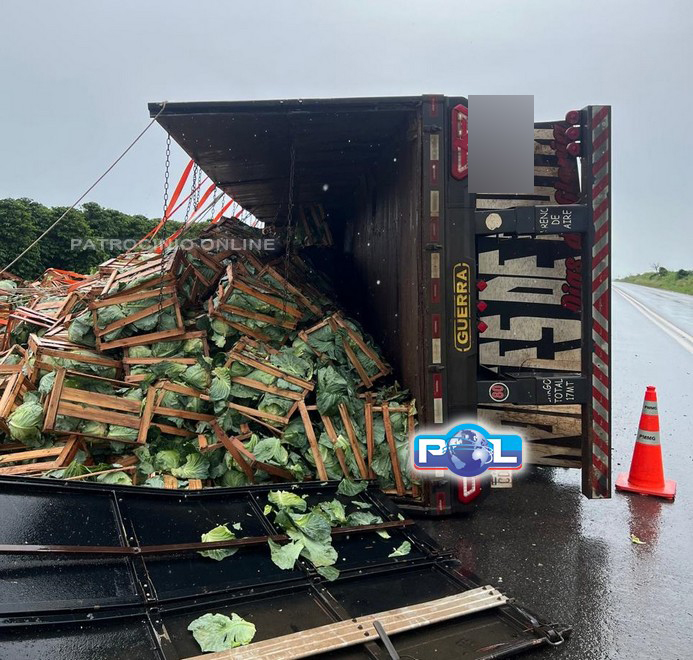 A Polícia Militar Rodoviária e o SAMU foram acionados na tarde de quinta-feira, 22/01/26, por volta das 13h30min, para atender a um tombamento na BR-146, km 68, no município de Serra do Salitre, envolvendo uma carreta Scania com placas do Paraguai, que obstruía parte da pista, com parte da carga de repolhos espalhada às margens e na via.