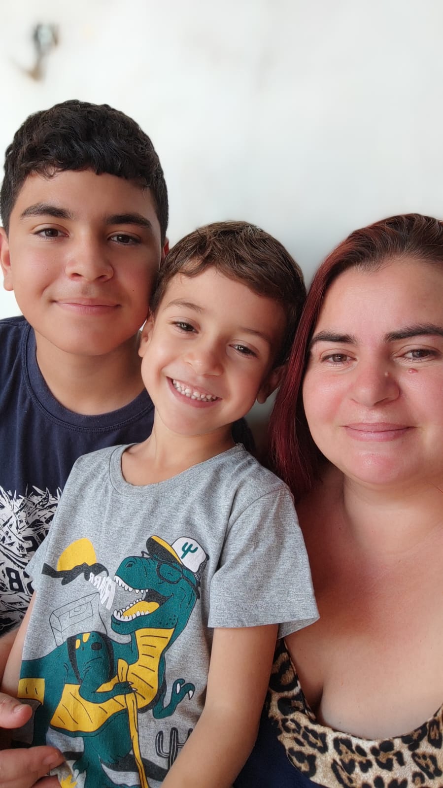 Juliana com seus dois filhos que participaram da ação do Mês das Crianças