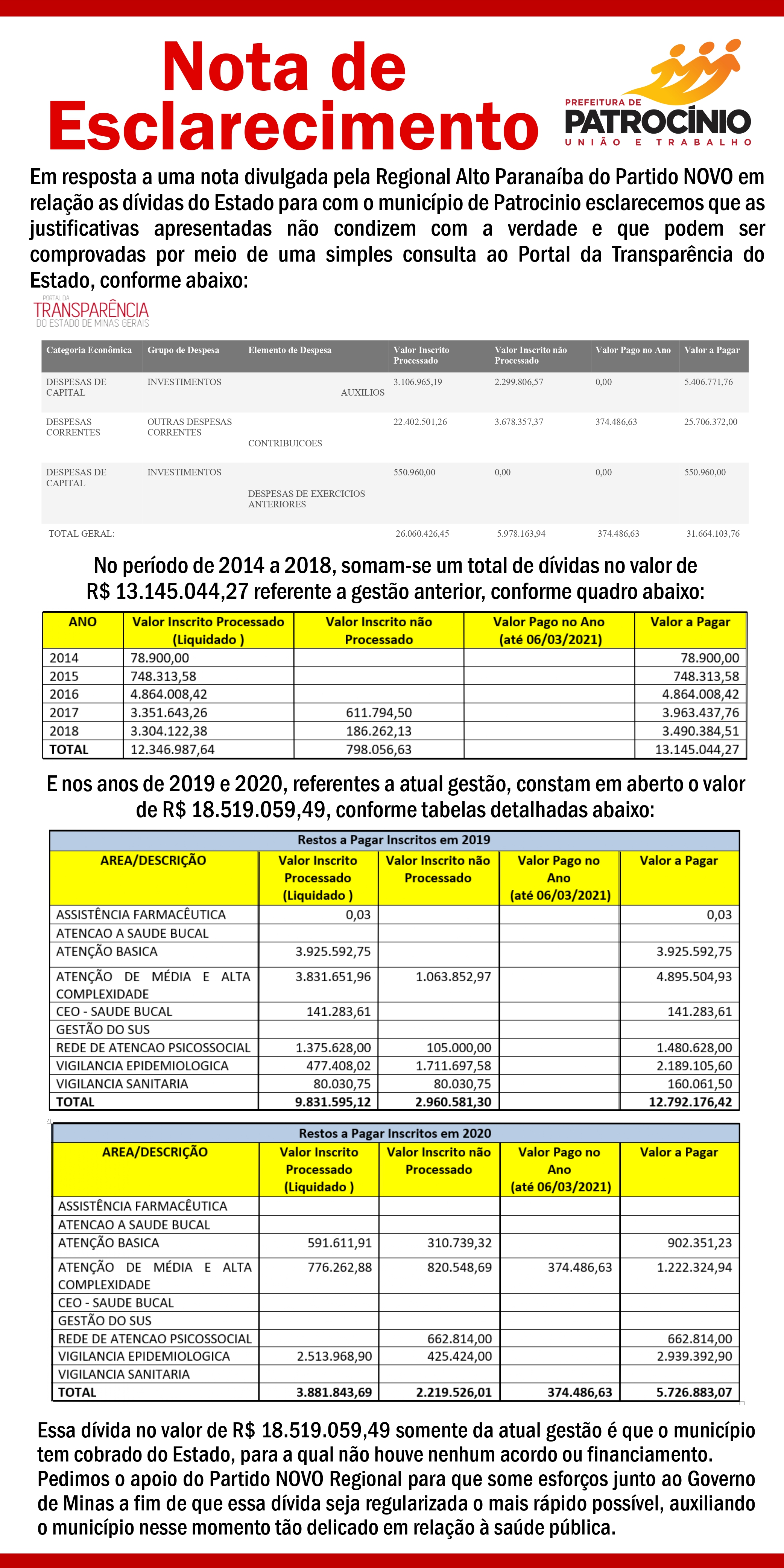 Com 100% do público alvo estipulado pelo Ministério da Saúde imunizado e considerando que a segunda dose da vacinação e prevenção da COVID-19 no Município de Patrocínio está em 75% do público alvo estipulado pelo Ministério da Saúde, publicou decreto nº 3.933 de 17 de setembro de 2021, permitindo retorno de várias atividades, como shows, cinema, templos religiosos e outros eventos sociais, atividades comerciais e retorno presencial as aulas.