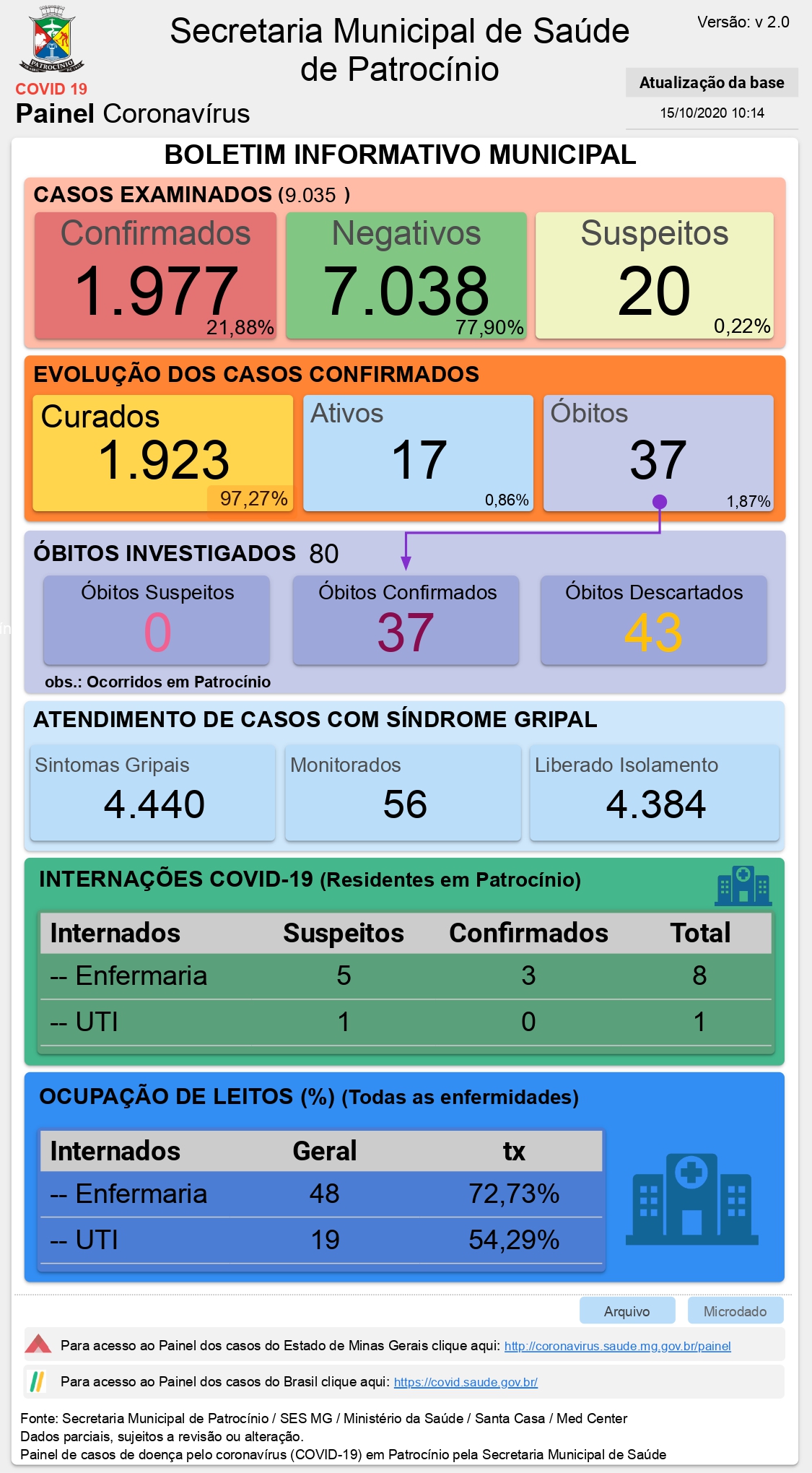 O boletim oficial de Patrocínio (MG) de quarta-feira, 12/05, mostra que 29 pessoas testaram positivo nas últimas 24 horas,