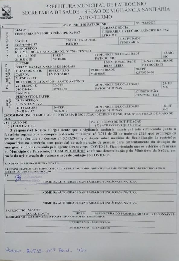 A perícia da polícia civil e o compareceu ao local e realizou os trabalhos. O perito também informou à justiça do trabalho de Patos de Minas, sobre o acidente de trabalho ocorrido.