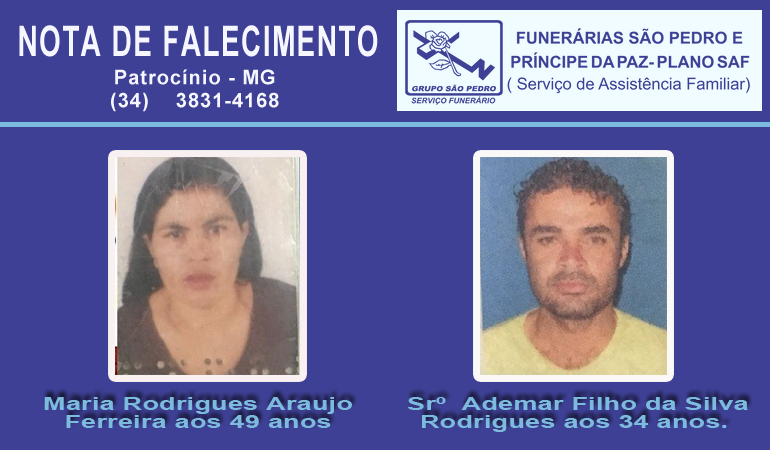 Está sendo velado na funerária Frederico Ozanam e será sepultado dia 02/05/2019 às 17h30min desta quinta-feira no Cemitério Municipal de Patrocínio.