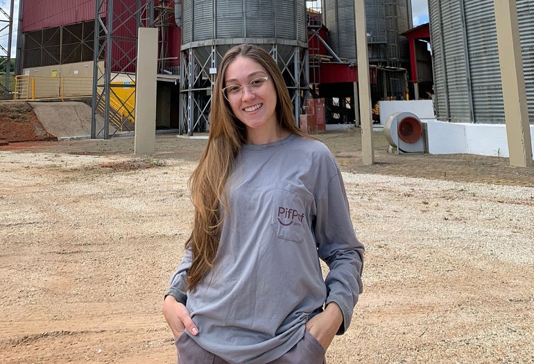 Vitória é estagiária na Pif Paf Alimentos e visualiza o que aprendeu na teoria agora na prática