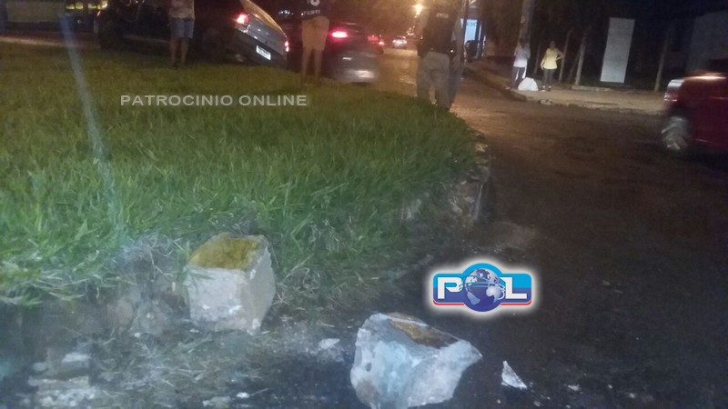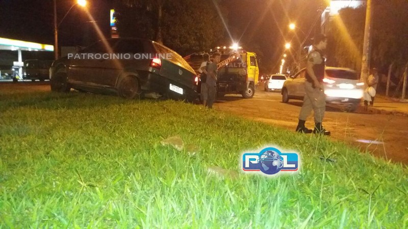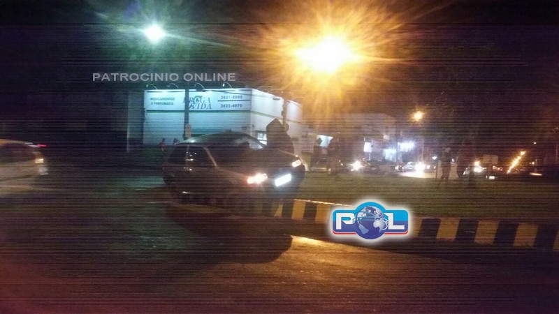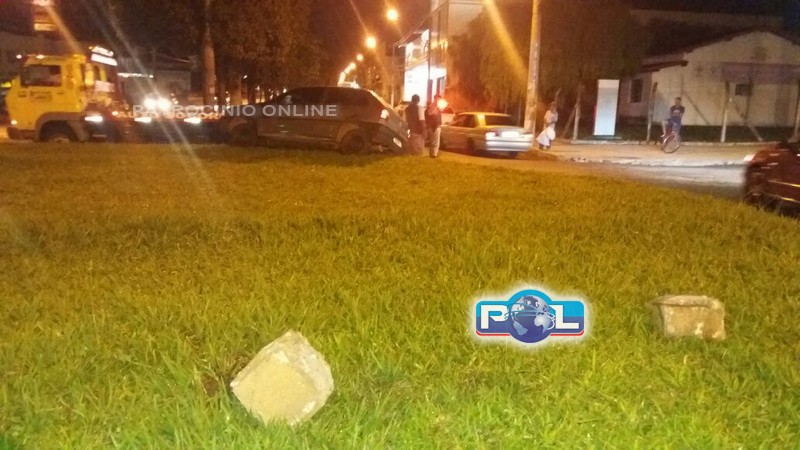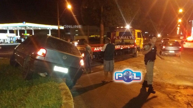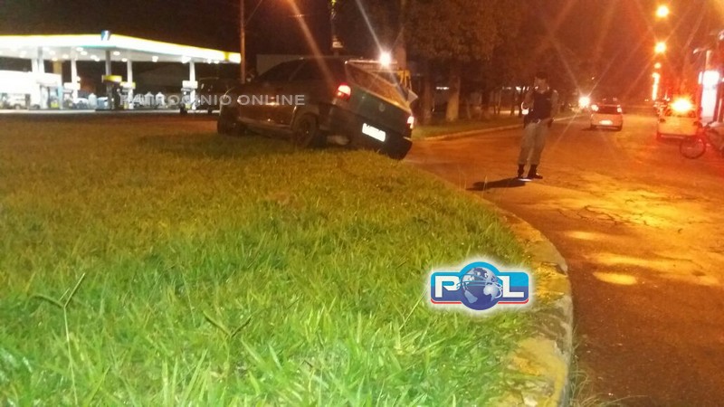 Por volta das 19h30ma Polícia Militar estava deslocando sentido Avenida Faria Pereira quando deparou com um veículo VW Gol em cima do balão da rotatória com a Avenida Marciano Pires.