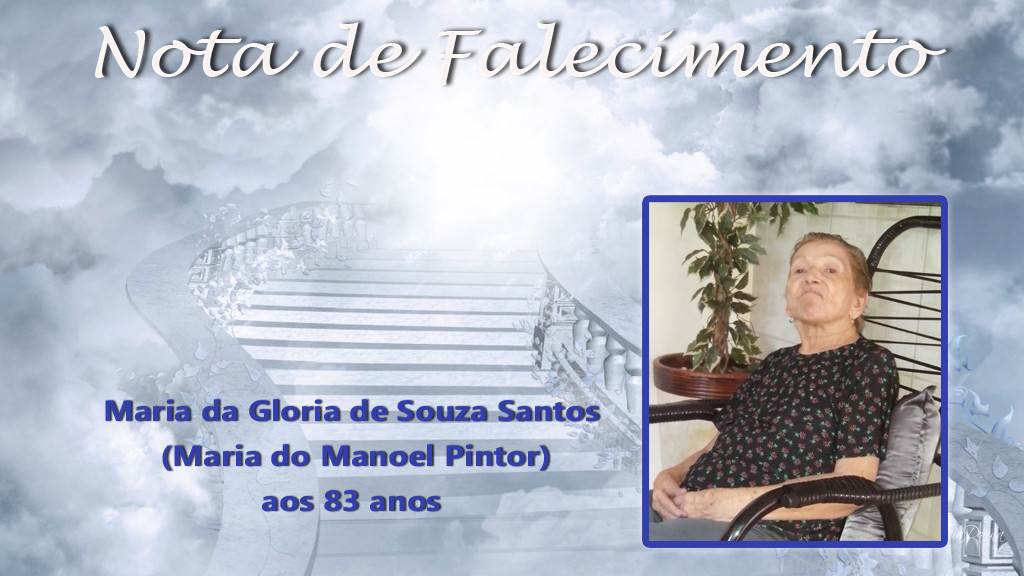 Faleceu hoje em Uberaba (MG) aos 83 anos, Maria da Gloria de Souza Santos (Maria do Manoel Pintor).