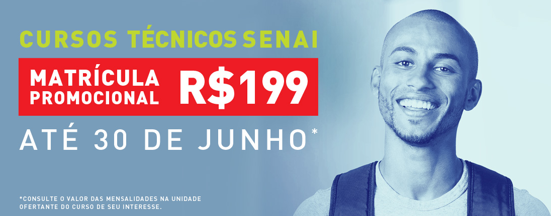 Se encerram no dia 30 de junho próximo as inscrições para os cursos técnicos: Técnico em Eletrotécnica e Técnico em Mecânica do SENAI Patrocínio.  Os cursos têm duração de 18 meses, e o custo médio das mensalidades é de R$ 330,40. A pré-matrícula está  com valor promocional de R$199,00.