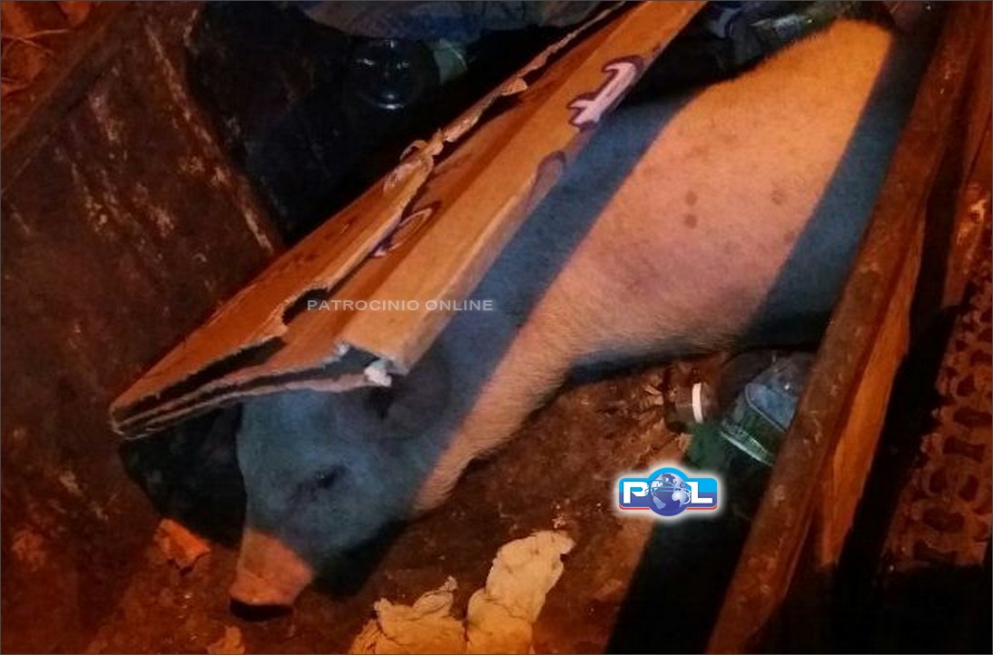 Em Patrocínio, no dia 22, por volta das 02h00min, a Polícia Militar foi acionada e recebeu informações de que alguns homens haviam pulado o muro nos fundo de um açougue (bairro Santa Terezinha) e furtado um suíno, fugindo logo em seguida sentido bairro Matinha.