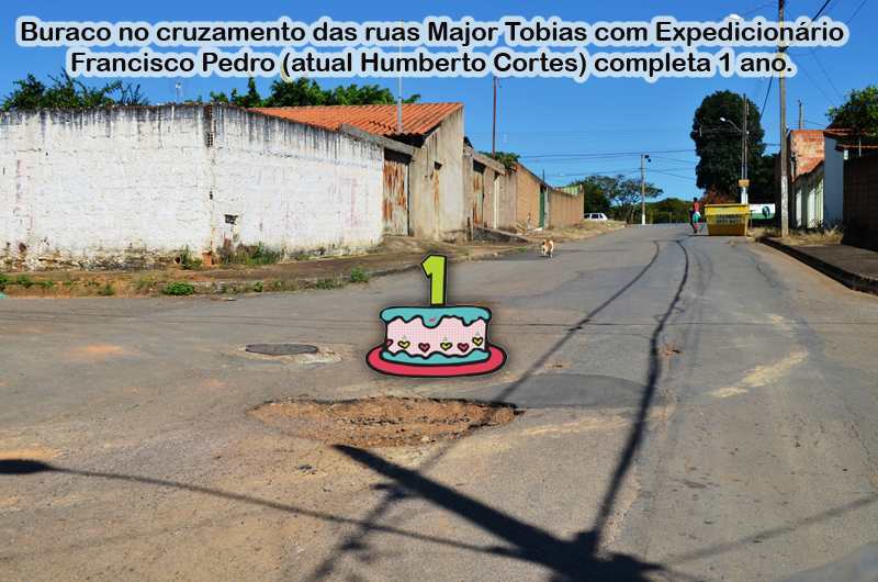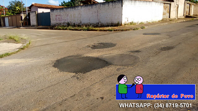 O buraco no cruzamento das duas ruas era um perigo iminente para acidentes e quebra de veículos. A situação estava assim há um ano, até que foi denuncianda pelo POL, através do Repórter do Povo.