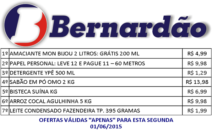Ofertas válidas apenas para segunda-feira, dia 25 de maio