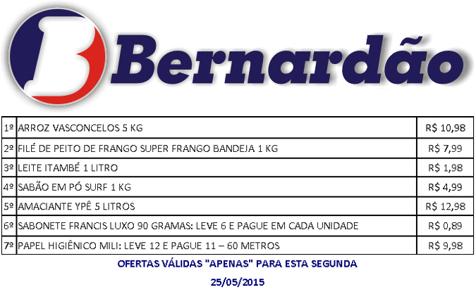 Ofertas válidas apenas para segunda-feira, dia 25 de maio