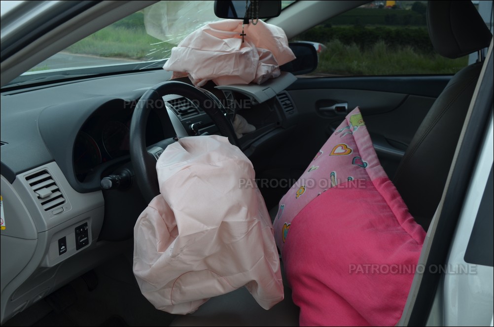 A foto mostra que o airbag do Toyota Corolla funcionou, evitando ferimentos mais graves.