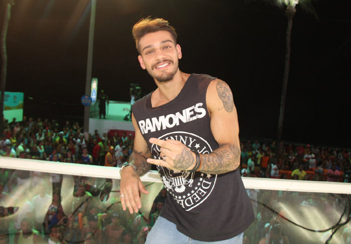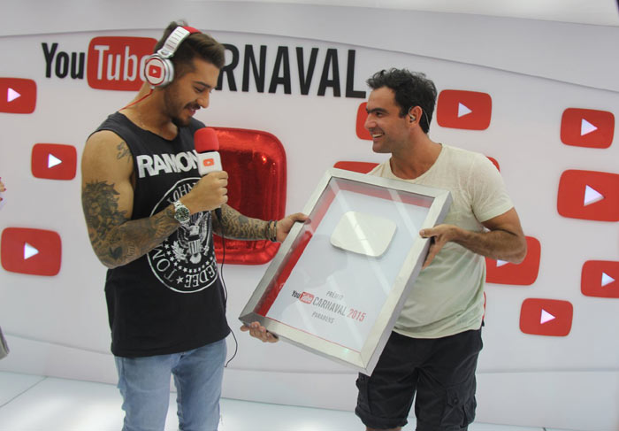 Lucas recebeu uma placa alusiva ao título de melhor cantor no Prêmio YouTube Carnaval