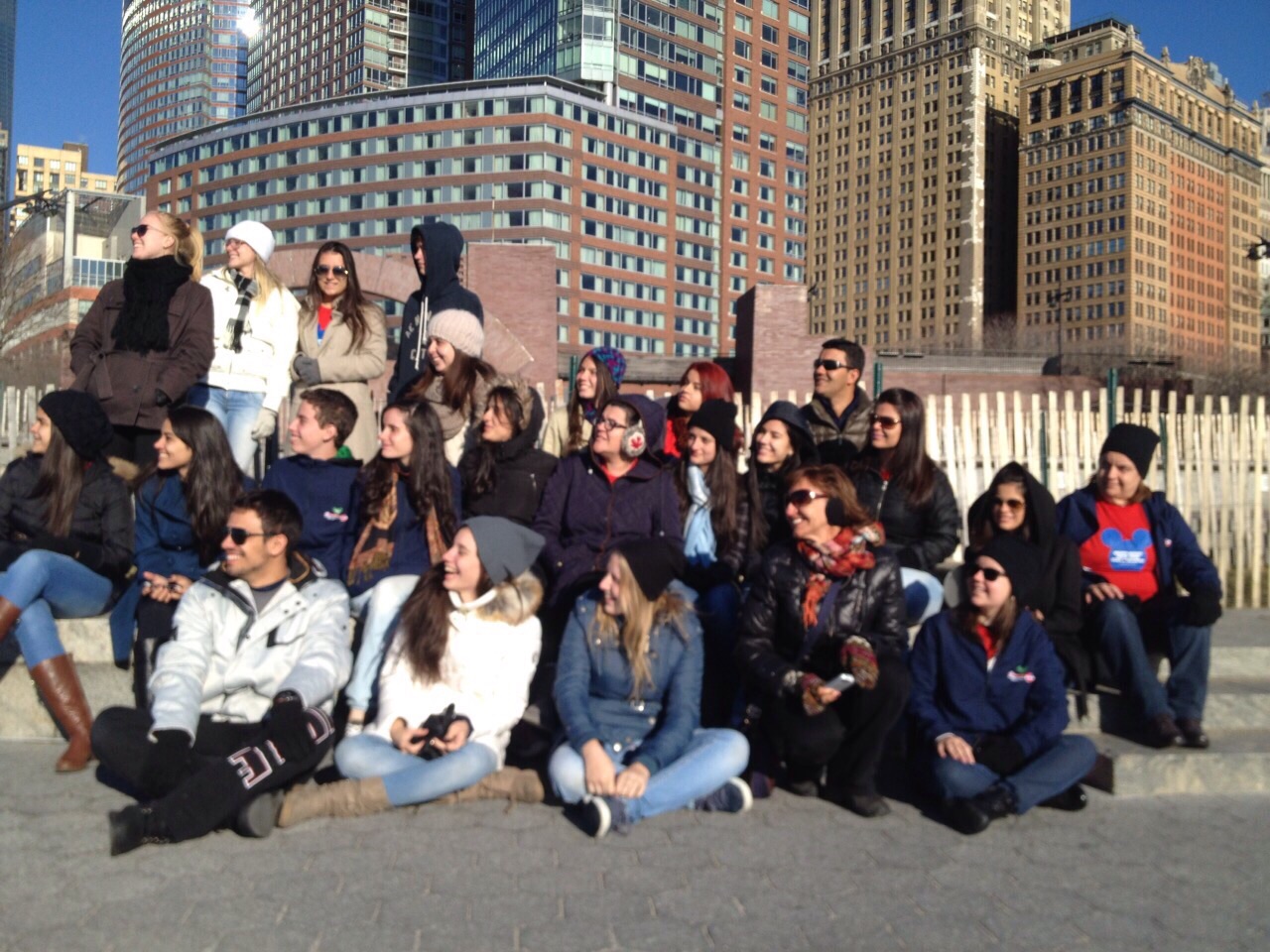 O grupo é formado por estudantes e pais que estão conhecendo NY e Orlando