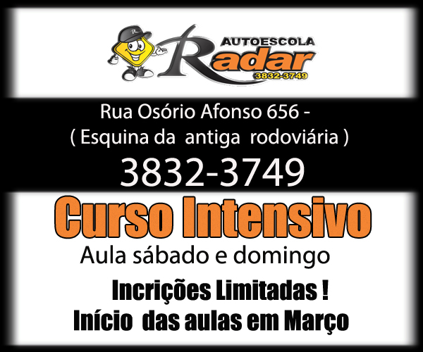 Atendendo à solicitação de vários alunos que não tem tempo de fazer o Curso ( 45 horas) durante a semana e que precisam acelerar o processo de habilitação, a Auto Escola Radar oferece nesse mês de Março um INTENSIVÃO com aulas no Sábado e Domingo!