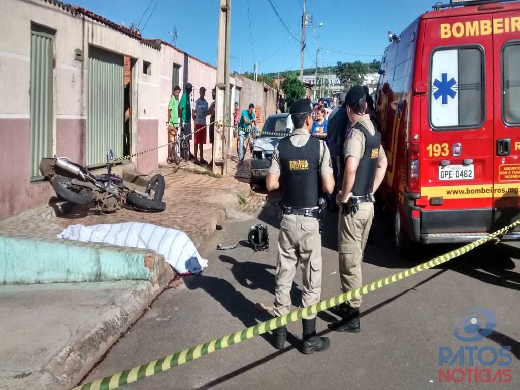 Patos de Minas - Um motociclista de 24 anos morreu na manhã deste sábado (27) na Rua Cariranhas, no Bairro Jardim Esperança. Bruno Nogueira Camargos estava a caminho do trabalho quando perdeu o controle da motocicleta e bateu contra um muro. A suspeita da polícia é que o tripé do veículo estava abaixado, o que causou o acidente.
