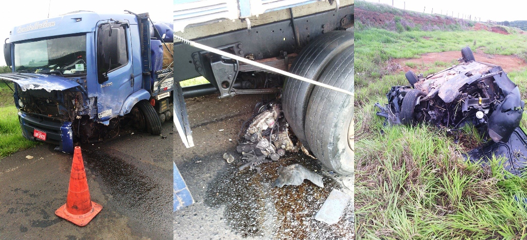 Foi uma colisão frontal entre um caminhão e um carro Polo