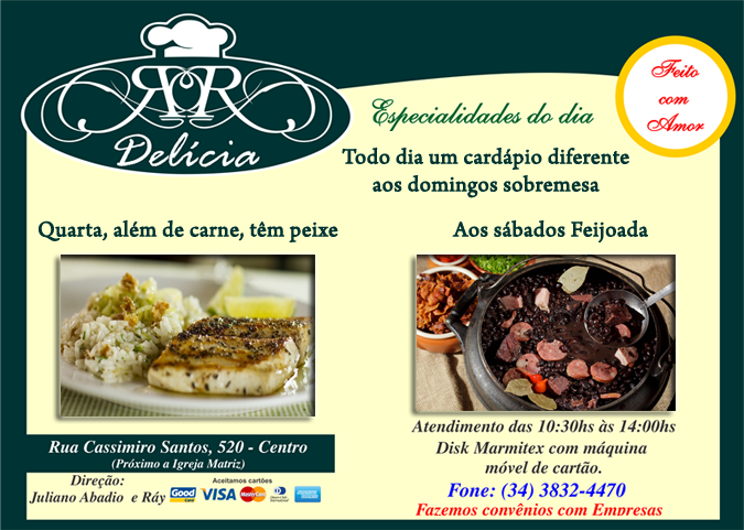 Nestas festas de fim de ano de descanso a sua esposa. peça um marmitex ou vá almoçar no Restaurante RR Delicia, na Cassimiro Santos, pertinho da Igreja Matriz. É um restaurante pequeno, mas surpreendente!