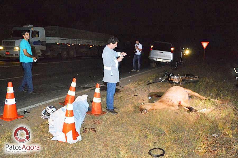 A batida foi tão forte que após o animal se chocar com a motocicleta, a vítima foi arremessada ao solo, não resistiu aos ferimentos e morreu ainda no local.