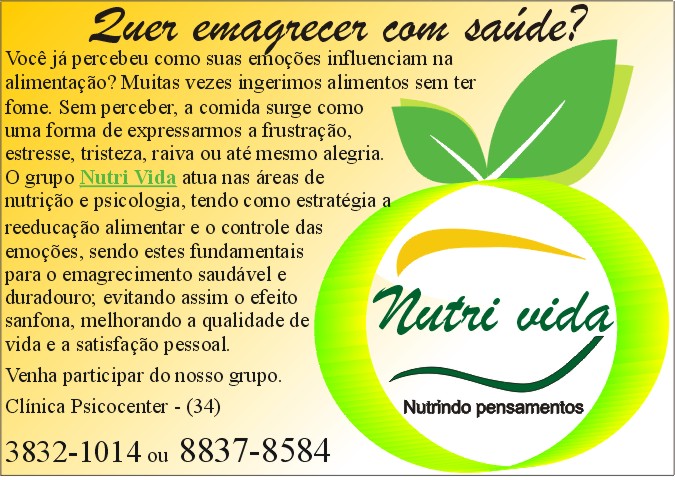 Participe do Grupo "Nutri Vida" da Clínica Psicocenter