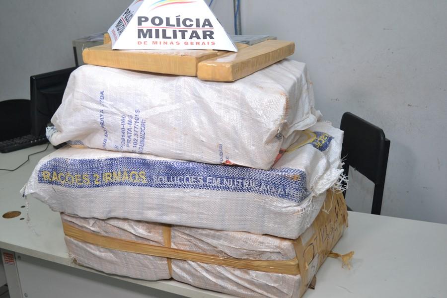 A policia militar apreendeu na madrugada deste sábado 100 Kg de maconha. Os policiais iniciaram uma operação na estrada da Serrinha, próximo a Patos de Minas, abordando veículos momento em que interceptaram uma VW/Parati com dois ocupantes.