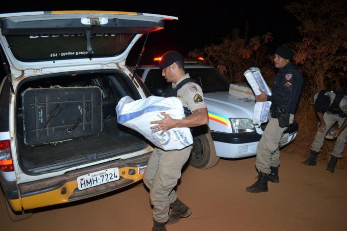 No VW/CrossFox os policiais encontraram três sacos contendo 100 Kg de maconha nele estava Carlos Magno Carvalho de 22 anos. Na VW/Parati estavam Wellington Ferreira da Silva conhecido também por Bambam de 30 anos e Raicharley Dieisson Cardoso da Silva de 22 anos.