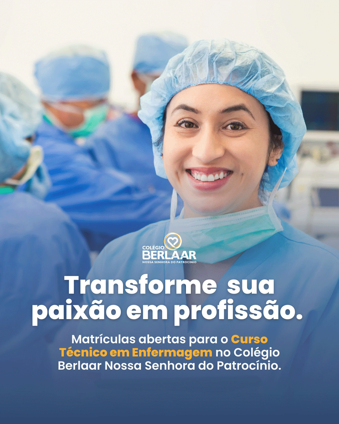 No Curso Técnico em Enfermagem do Colégio Berlaar Patrocínio, você já estagia no primeiro ano em instituições como Santa Casa ou Pronto Socorro. Em um ano, torna-se Auxiliar de Enfermagem, pronto para entrar no mercado.
