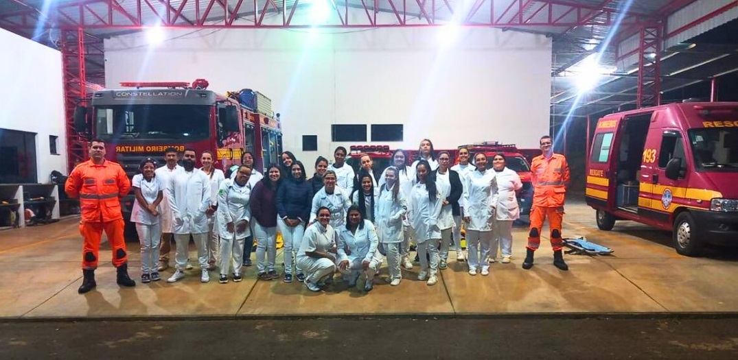 Os alunos tiveram a oportunidade de conhecer o processo de atendimento desde o acionamento da equipe de resgate até a chegada ao hospital, incluindo a comunicação com a central de emergência.