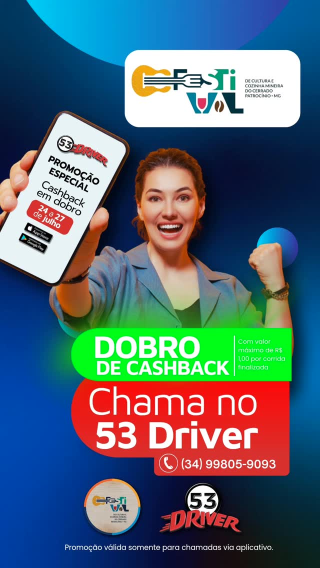 No 53 Driver, você acumula dinheiro de volta a cada corrida, direto na carteira de crédito do app — e durante o festival, esse valor é dobrado!
