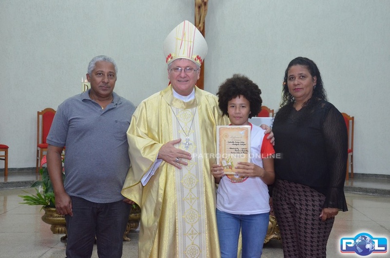 Confirmaram sua opção de seguir Jesus Cristo, recebendo o Sacramento da Crisma pela imposição das mãos e a unção do Bispo Dom Cláudio Nori Sturm, que presidiu a Santa Missa da Confirmação do Batismo e, 17 adolescentes.
