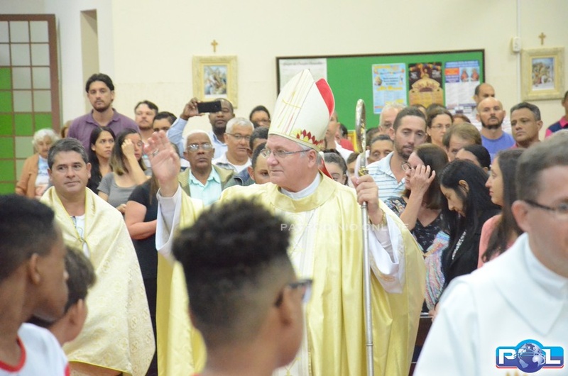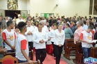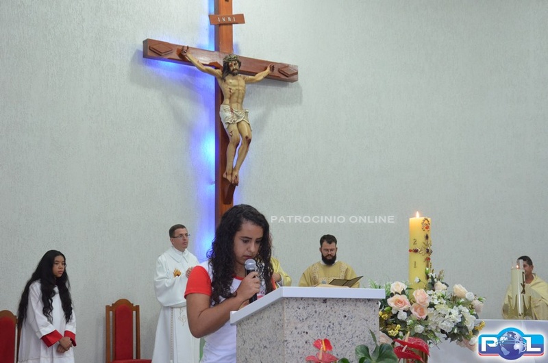 A celebração começou com a procissão de entrada dos Leitores, Ministros, Coroinhas e com Bispo Dom Cláudio, padre Eduardo e o Diácono Robson.