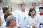 Após a Santa Missa fiéis tiraram fotos com o padre.