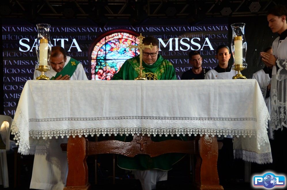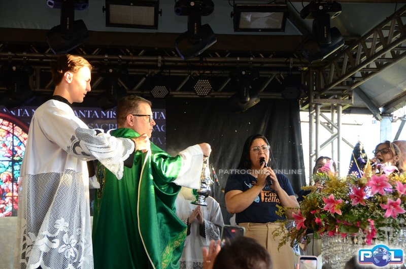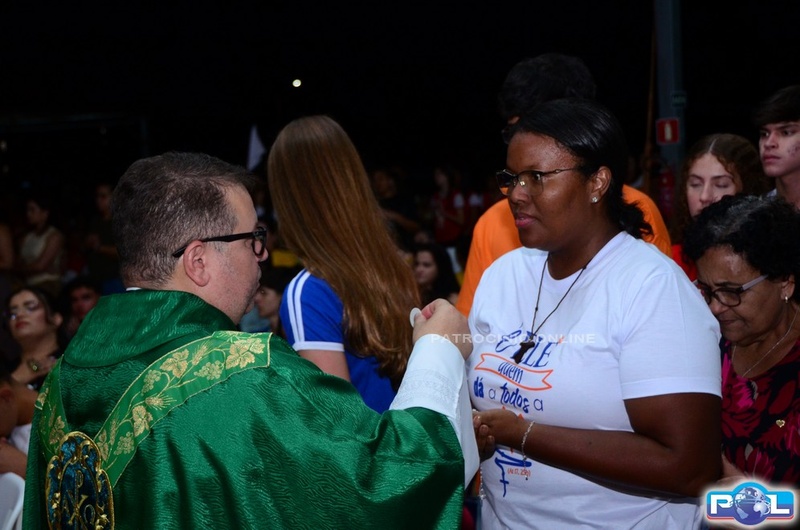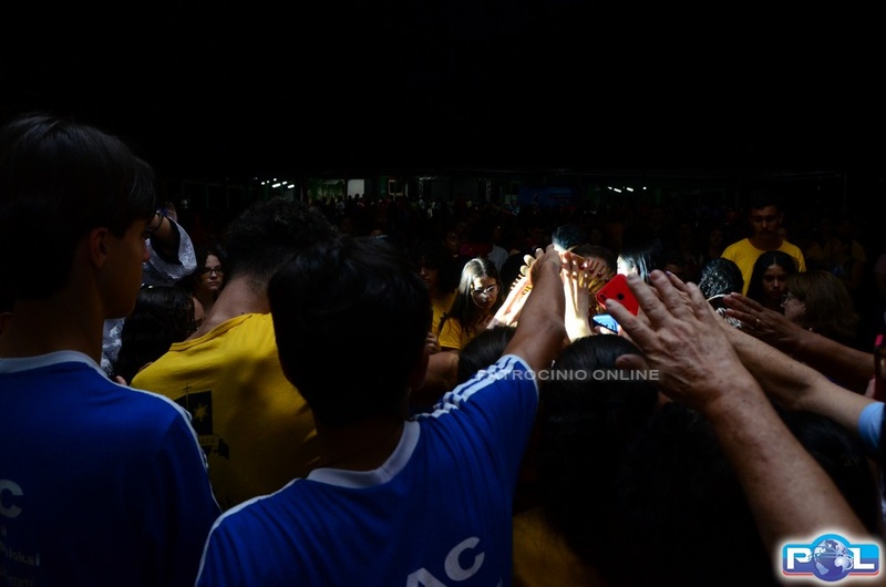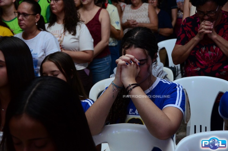 Antes, aconteceu a homenagem e a coroação a Nossa Senhora Aparecida, feita pelo EJC Exército de Cristo.
