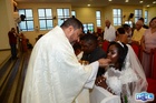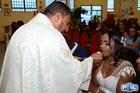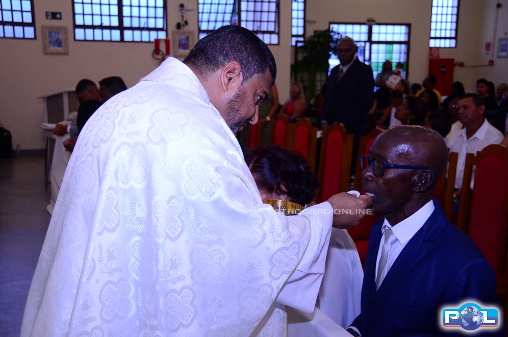 Os noivos comungaram o Corpo de Jesus.