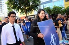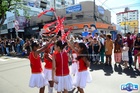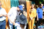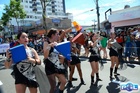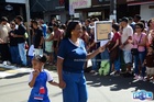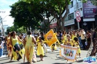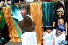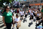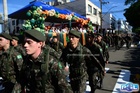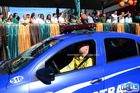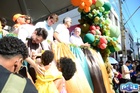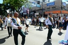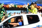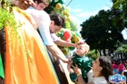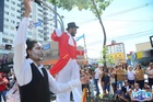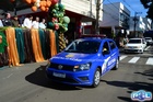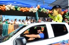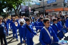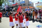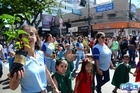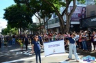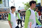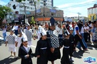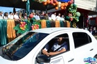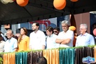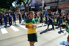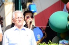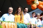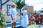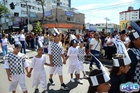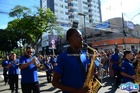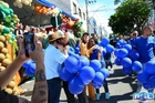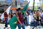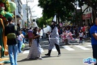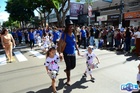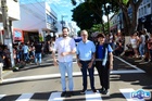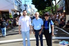 Durante o desfile, o prefeito e o vice receberam camisa e presentes.