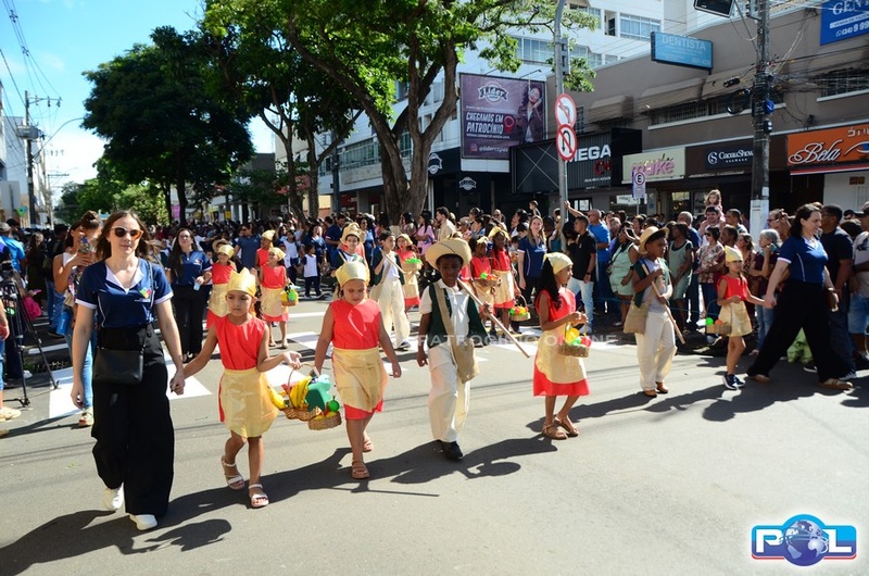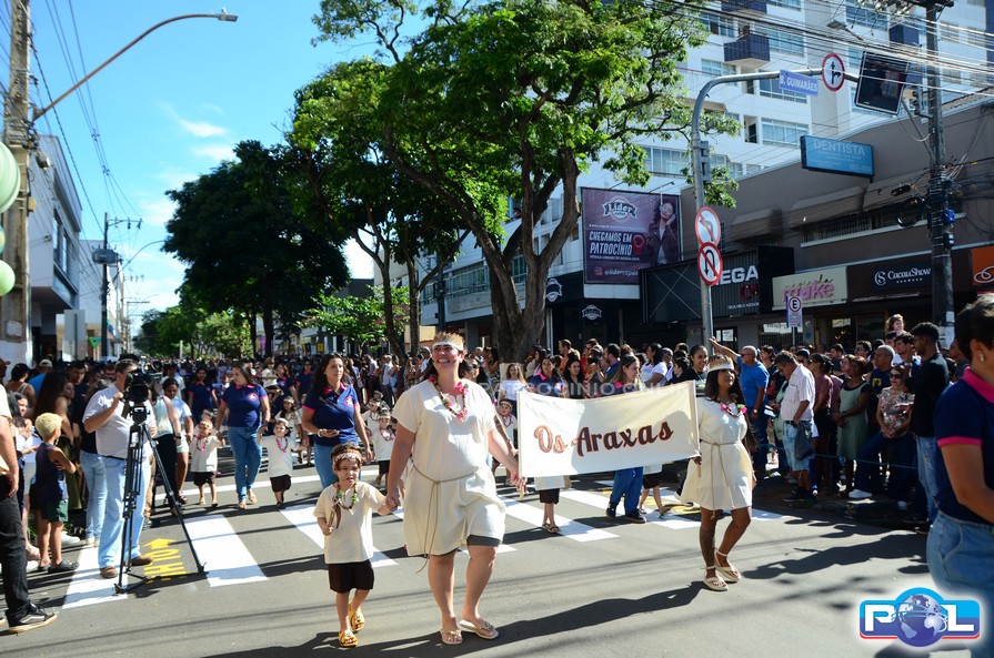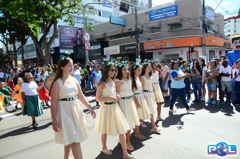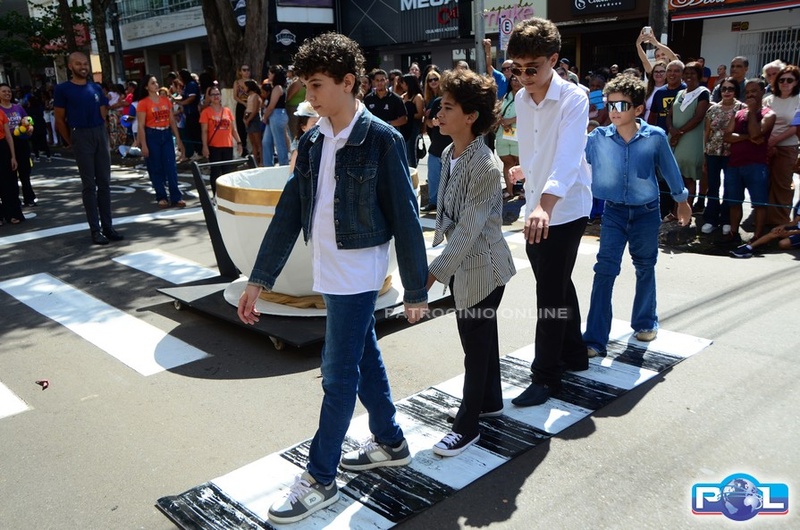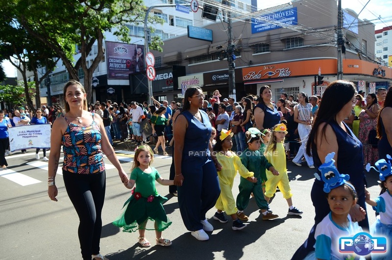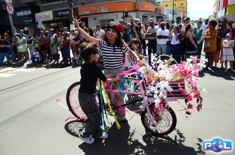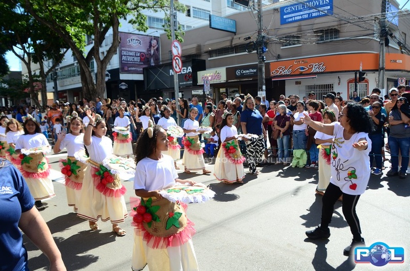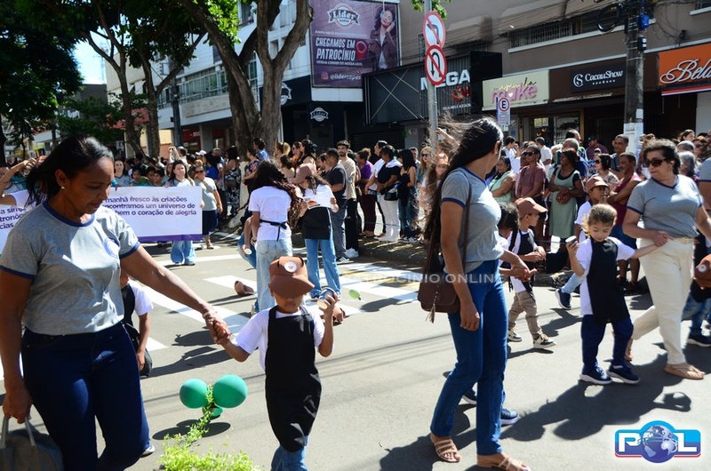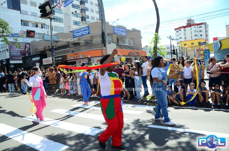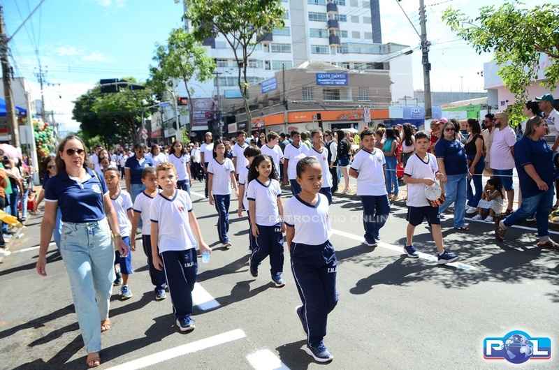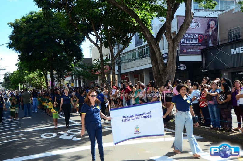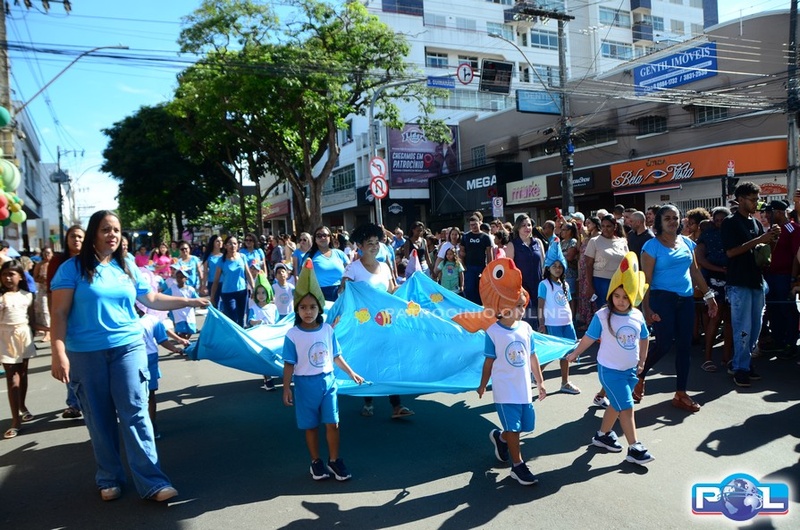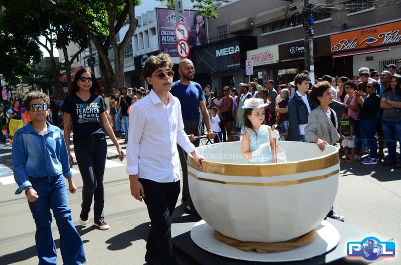 A educação teve destaque no desfile, com a participação de projetos e núcleos da rede municipal, evidenciando ações nas áreas de alfabetização, ensino especializado, línguas, ciências, artes, esportes e tecnologia.